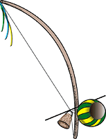 É feito de gomo de bambu sobre o qual se passeia uma haste de metal. Também existe outro tipo feito de uma pequena mola. Desconhece-se a origem do nome, assim como a sua procedência.